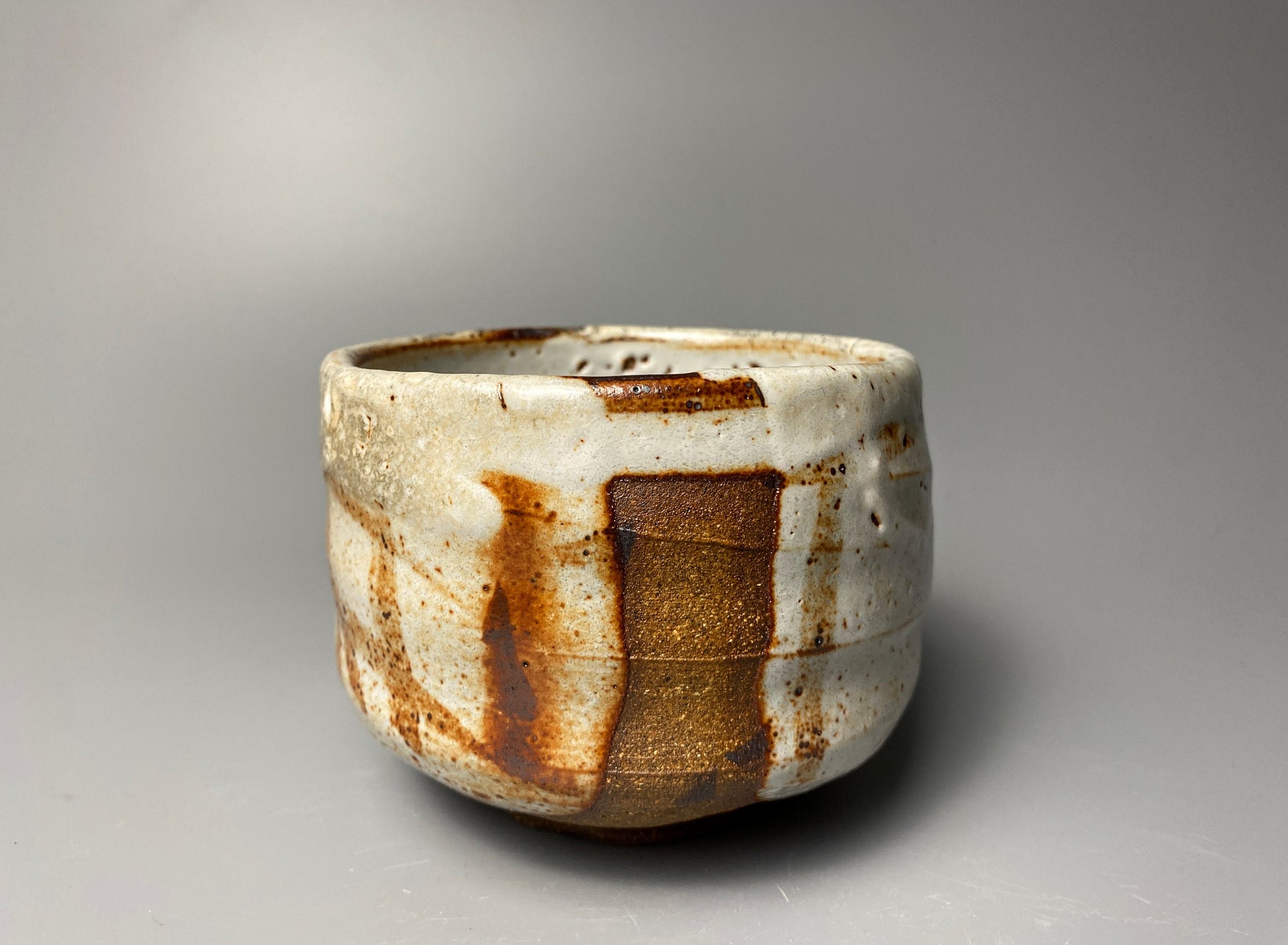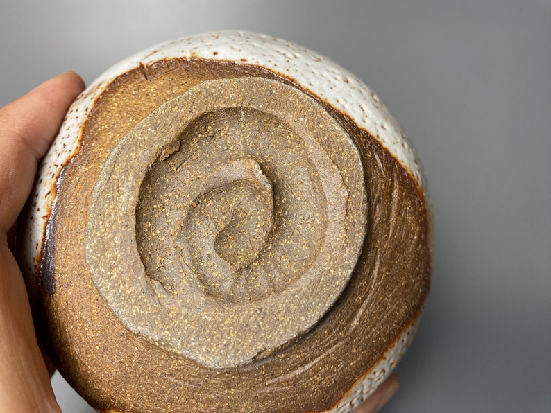 As for all my bowls I wanted to create a piece that was original and showed the hand of the maker. I did this by throwing a loose form, carving the footring, and glazing in layers. I also wanted to reveal some of the bare clay. I added some iron brush strokes that hopefully add some more to the story.