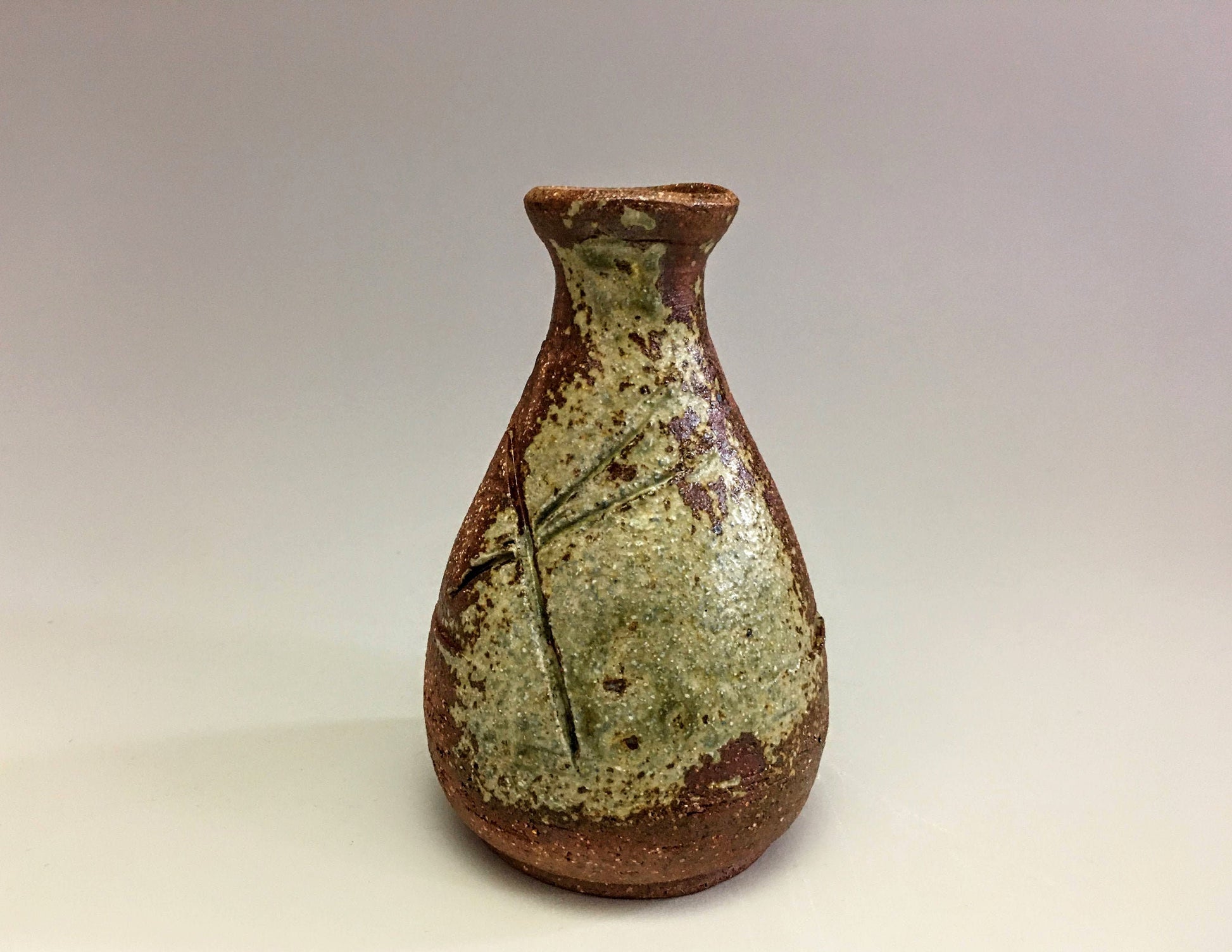This small tokkuri/vase was wheel thrown and then hand altered in my small pottery workshop here in Taiwan.