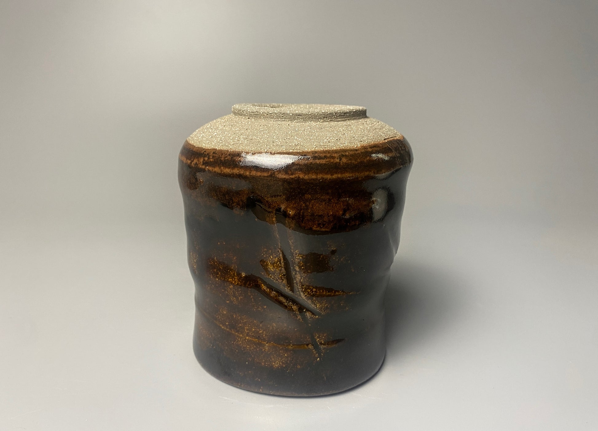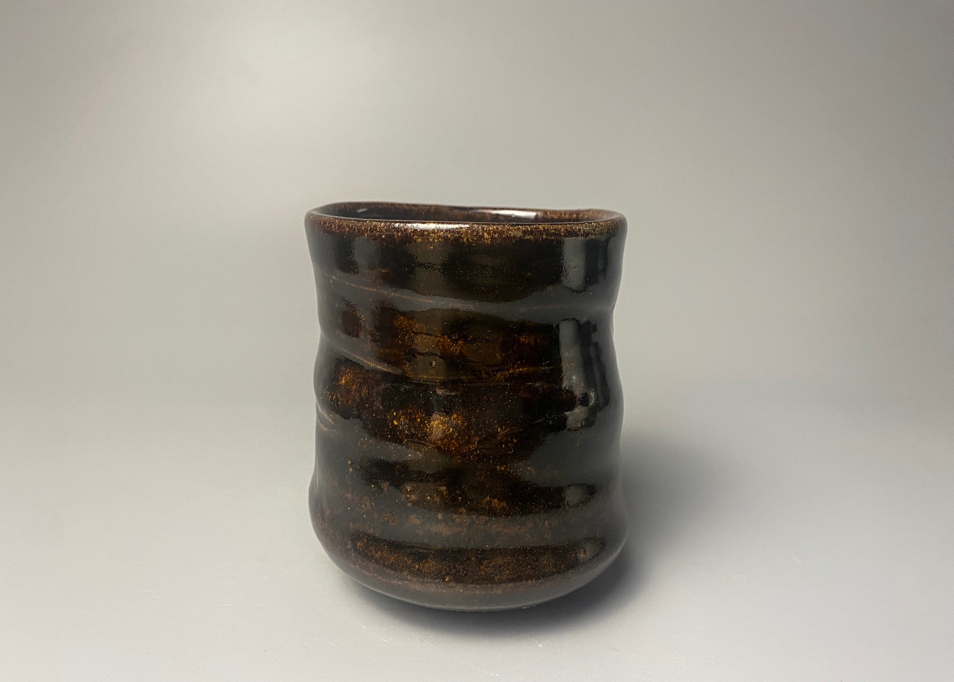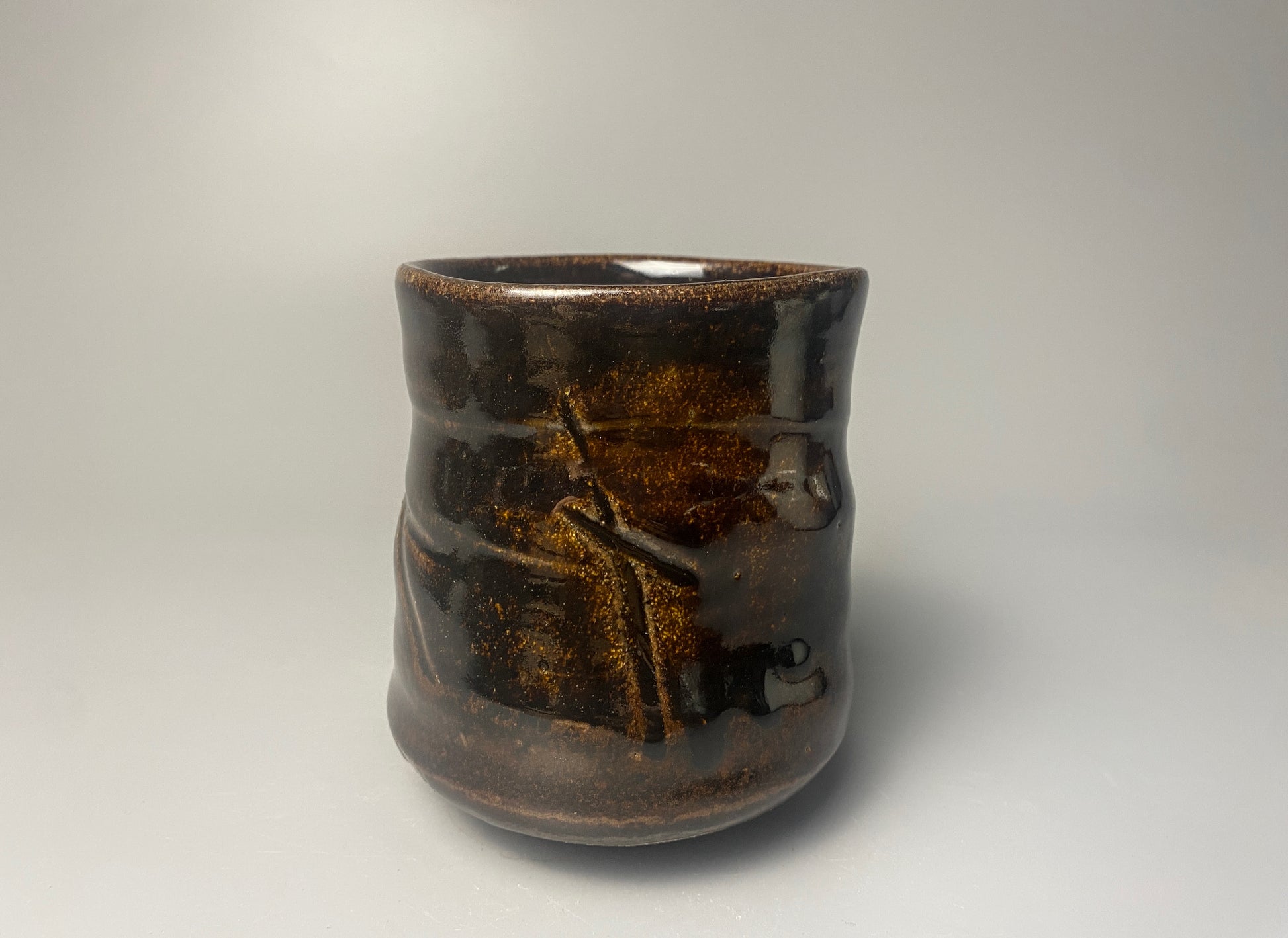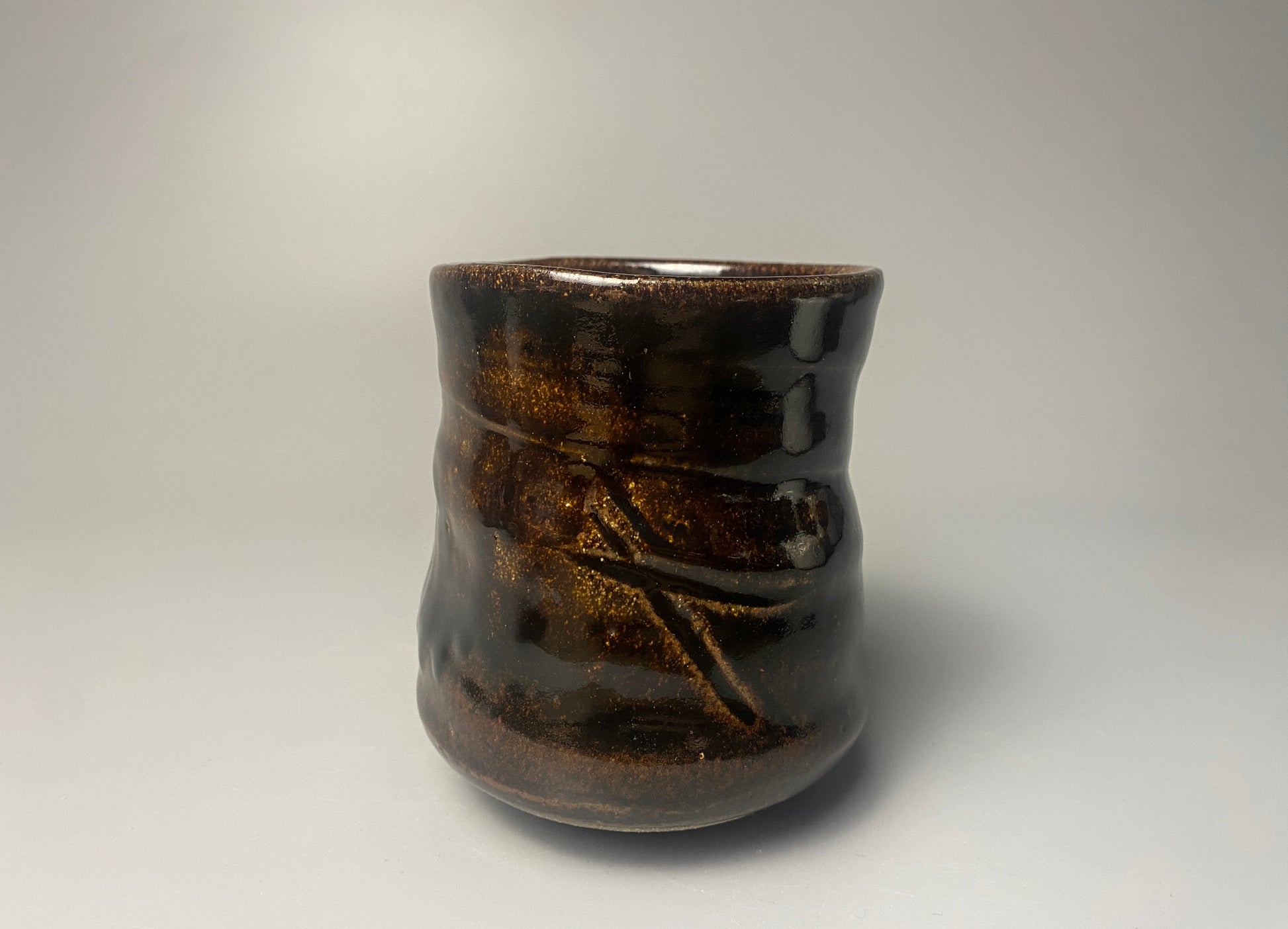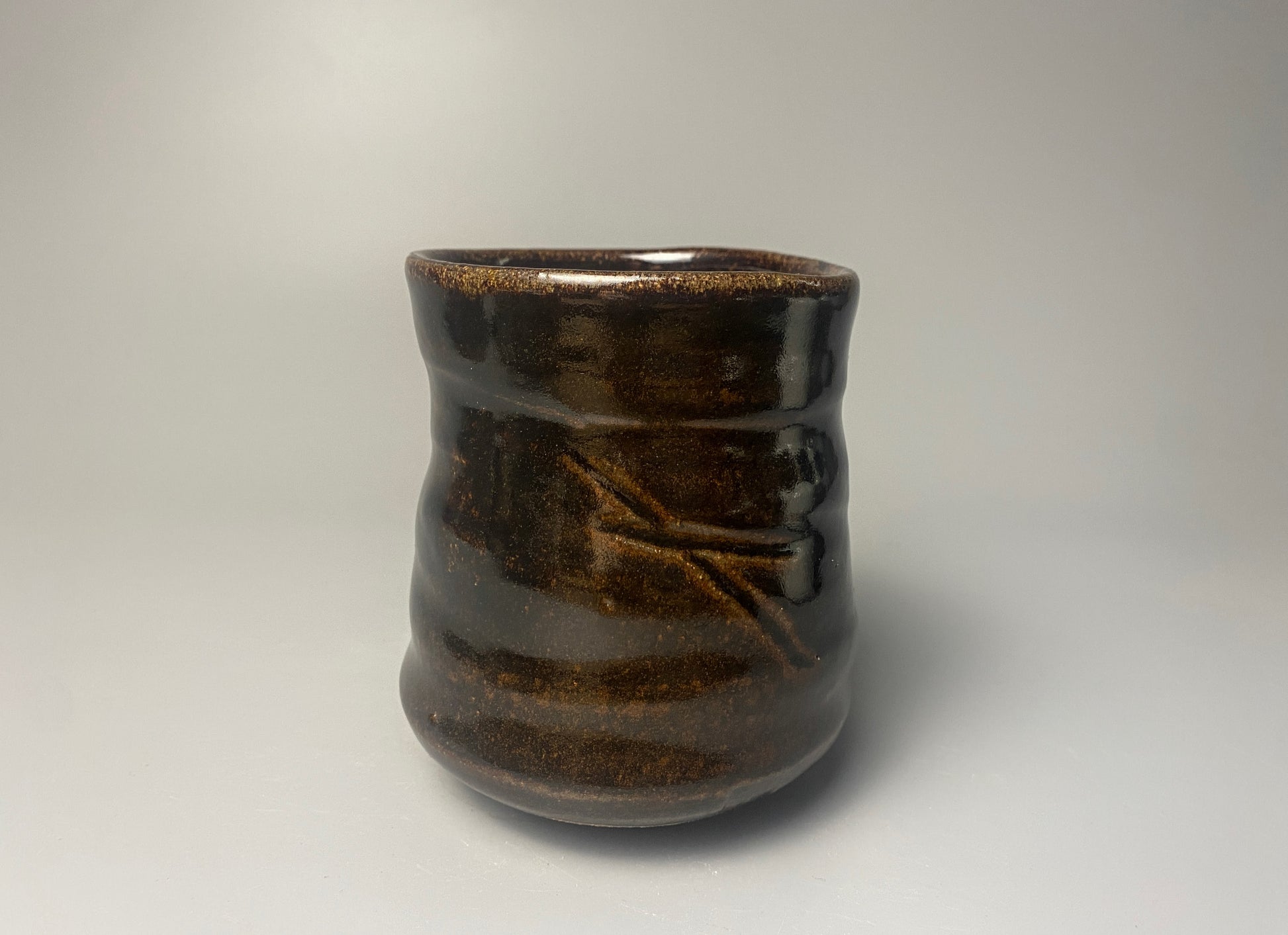 This yunomi, crafted from Taiwanese clay, is designed for mindful tea drinking. It has bee fired to cone 10 and glazed in a rich tenmoku glaze. Subtle lines have been etched into the clay to add texture and visual interest, enhancing the natural depth and movement of the glaze. Embracing wabi-sabi aesthetics, this piece celebrates imperfection, simplicity, and quiet beauty.